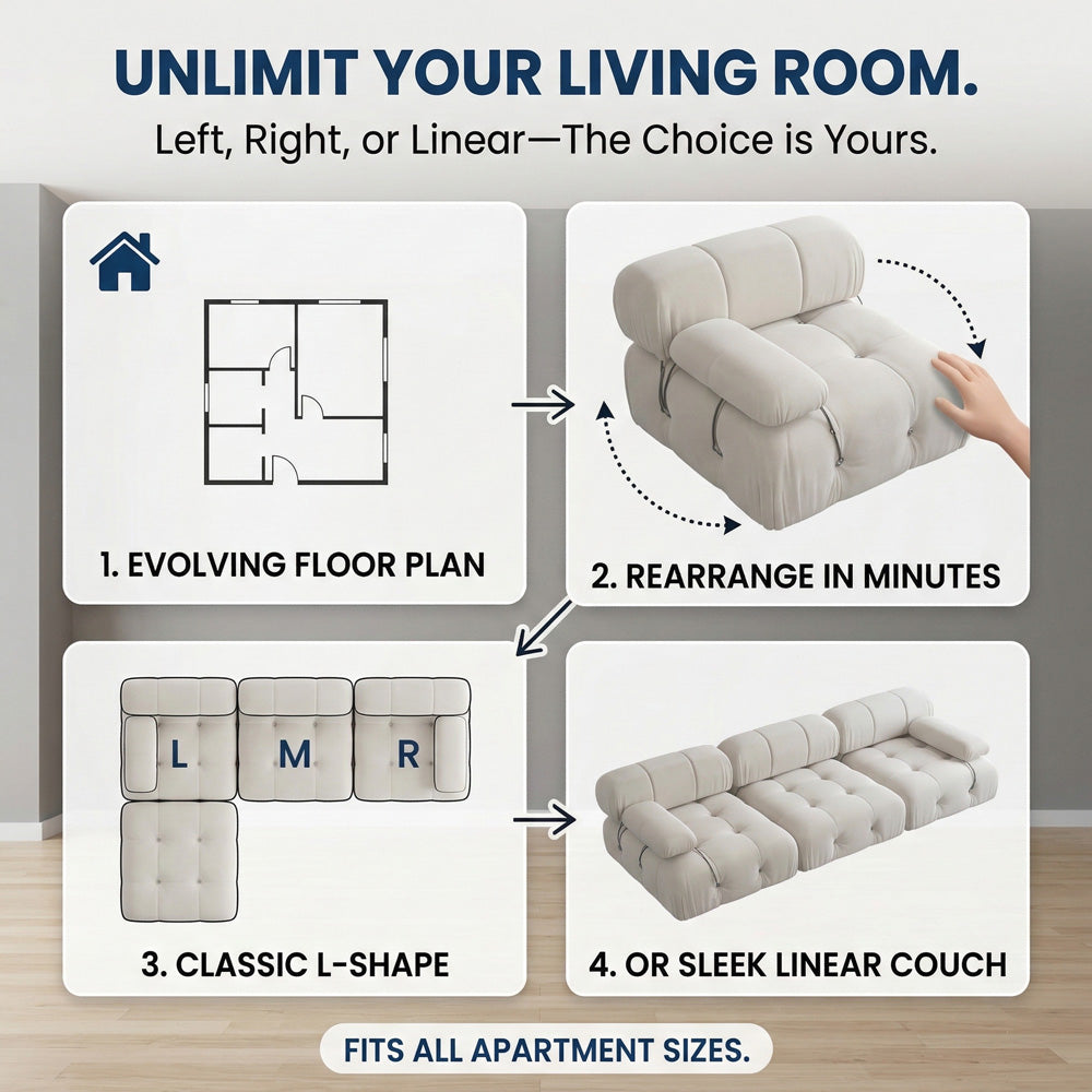 | Modular Components | Left Seat, Right Seat, Medium Seat, and Ottoman |
