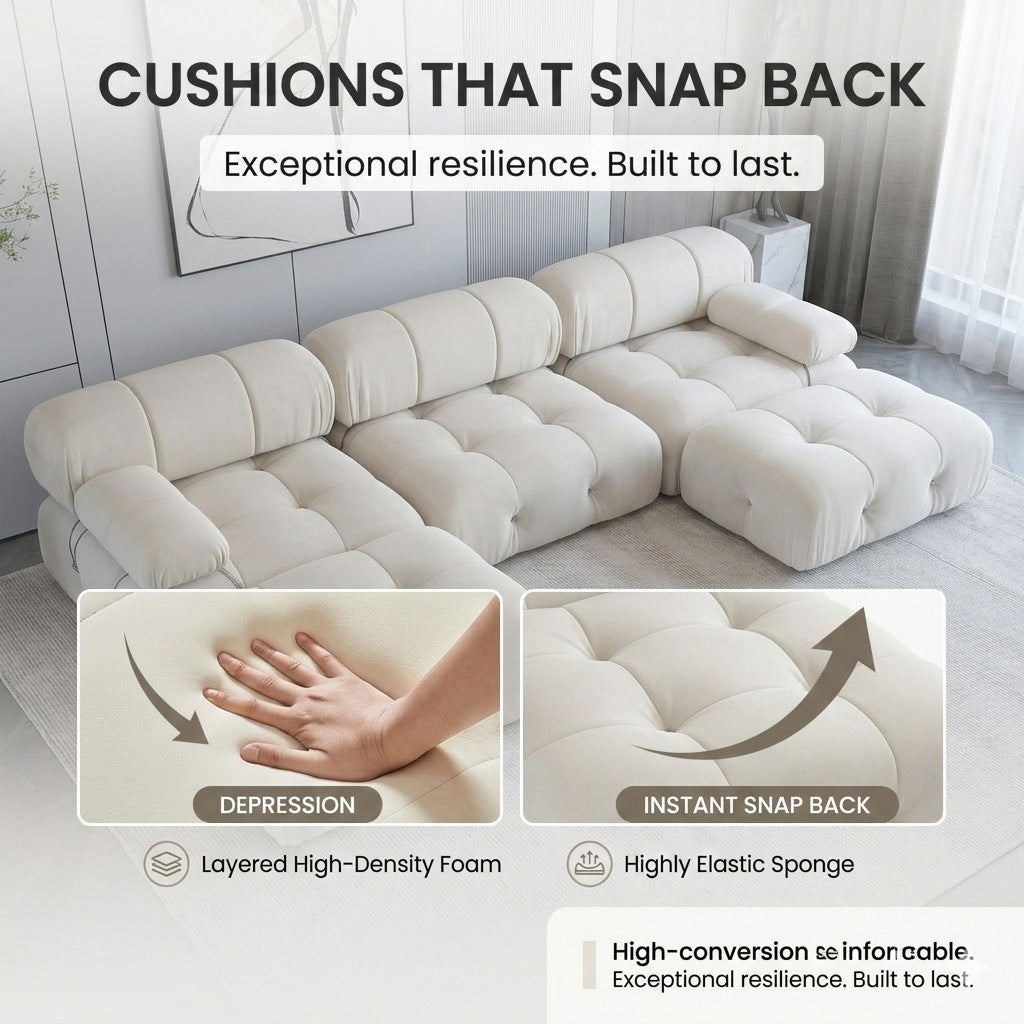 The NordicNode™ reinvents the classic tufted silhouette with a low-profile design that anchors your living space. Its oversized, pillow-like segments offer a plush, sink-in feel that stays supportive through every movie marathon or afternoon nap.