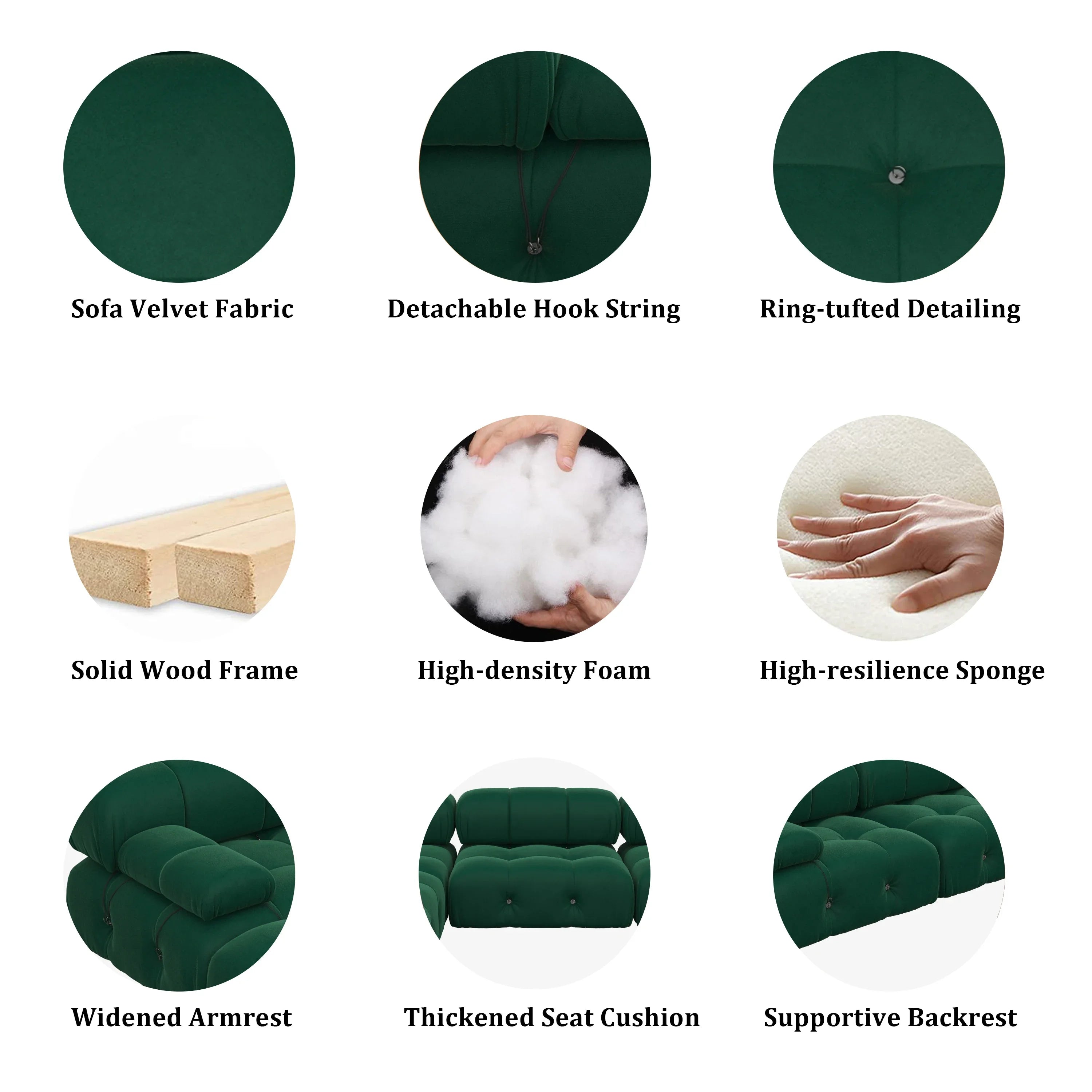 | Design Features | Ring-tufted detailing, widened armrests, and non-slip bottom plates |